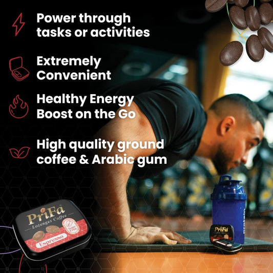 A set of delicious Priva coffee tablets that help with memorization and concentration, help you stay awake, and stimulate the brain and memory.